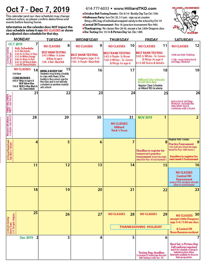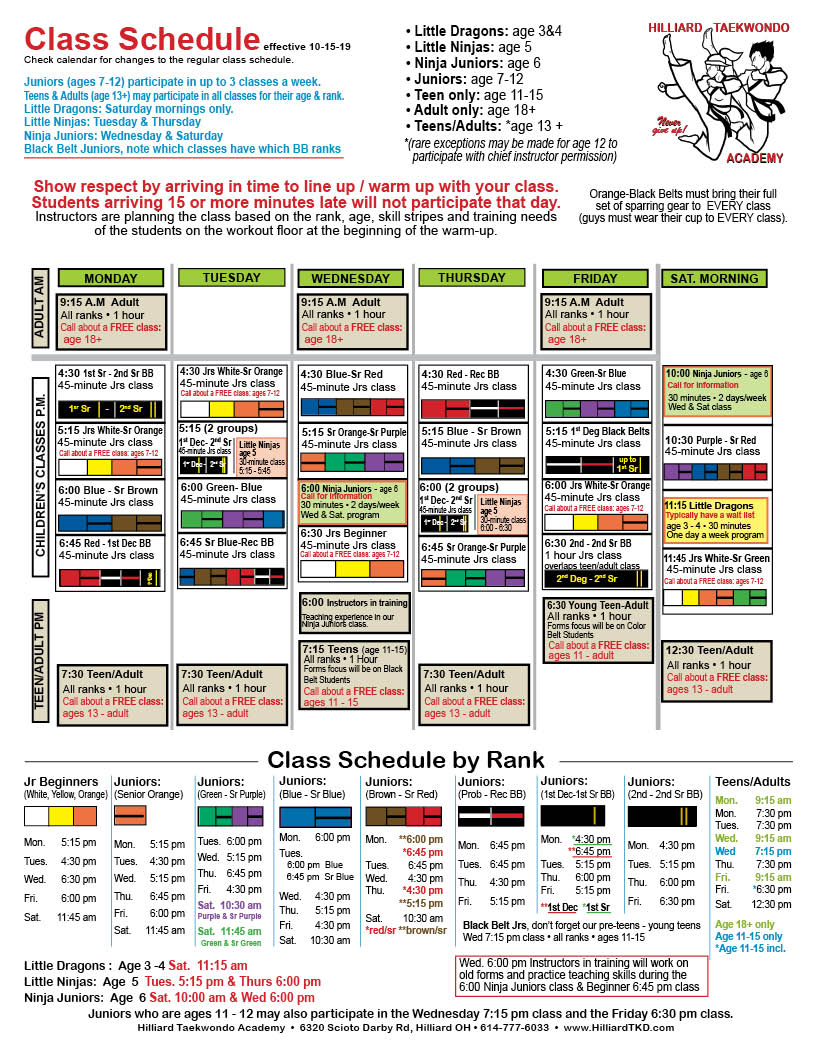 FALL / WINTER 2019 CLASS SCHEDULE BELOW
